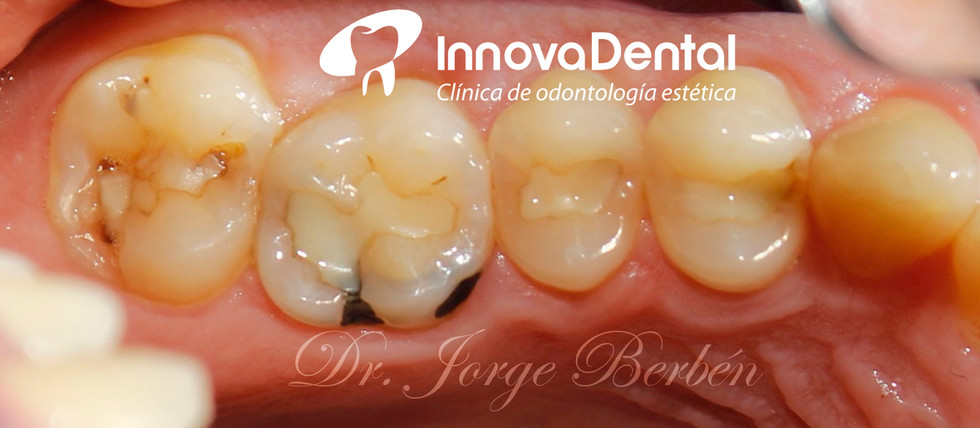 En el siguiente caso empezaremos con las premolares en las cuales, como puedes en la fotografía se observan rellenos antiguos y desadaptados los cual da filtración y problemas de caries.